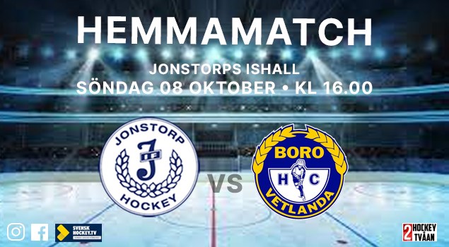 Nu på lördag den 25/11 kl 15.00 anordnar Jonstorp Hockey tillsammans med sponsorer en 5-kronorsmatch. Det innebär att alla åskådarna erbjuds fri entré. Och inte nog med det, de sponsrande företagen skänker 5 kronor per åskådare till föreningen. Så kom och titta, man ur huse. Det blir: Korvgrillning vid entrén Försäljning av 50/50 lotter I första pausen: Uppvisningamatch av D2 I andra pausen: Puckkastning Matchens lirare presenteras av Ica Nära Jonstorp Puckkastning: Vinn en hockeyklubba signerad av utlandsproffset och tigern Niklas Hansson. TACK TILL MATCHENS SPONSORER: A. Thoresson Bygg & Smide, Bravida, Budcom, Byggnadsfirma Klang & Co, Colorama Ängelholm, Elcenter i Ljungby, Evofilm, Fond och Försäkring, Grävmaskinsspecialisten GMS, Gribblings Bygg, Hellevik, Helsingborgs Gummifabrik, ICA Hörnan i Hörnefors, Kurt Lundström Målerifirma, Laxen specialnät, Mattis Pool & Bygg, Midem, Nya Plåt i Halmstad, RP Motor, Solid försäkring, Steglinge Gård, Swelast, Sweryb Inernational AB, Thevinyl AB, Tikkurila och Wsportsmedia